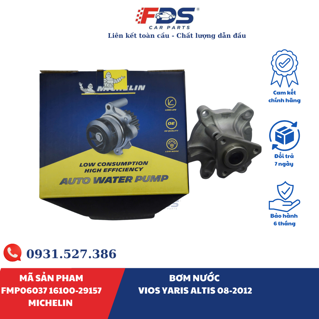 BƠM NƯỚC TOYOTA VIOS / YARIS / COROLLA ALTIS (2008–2012) | MICHELIN FMP06037 – MÃ 16100-29157
