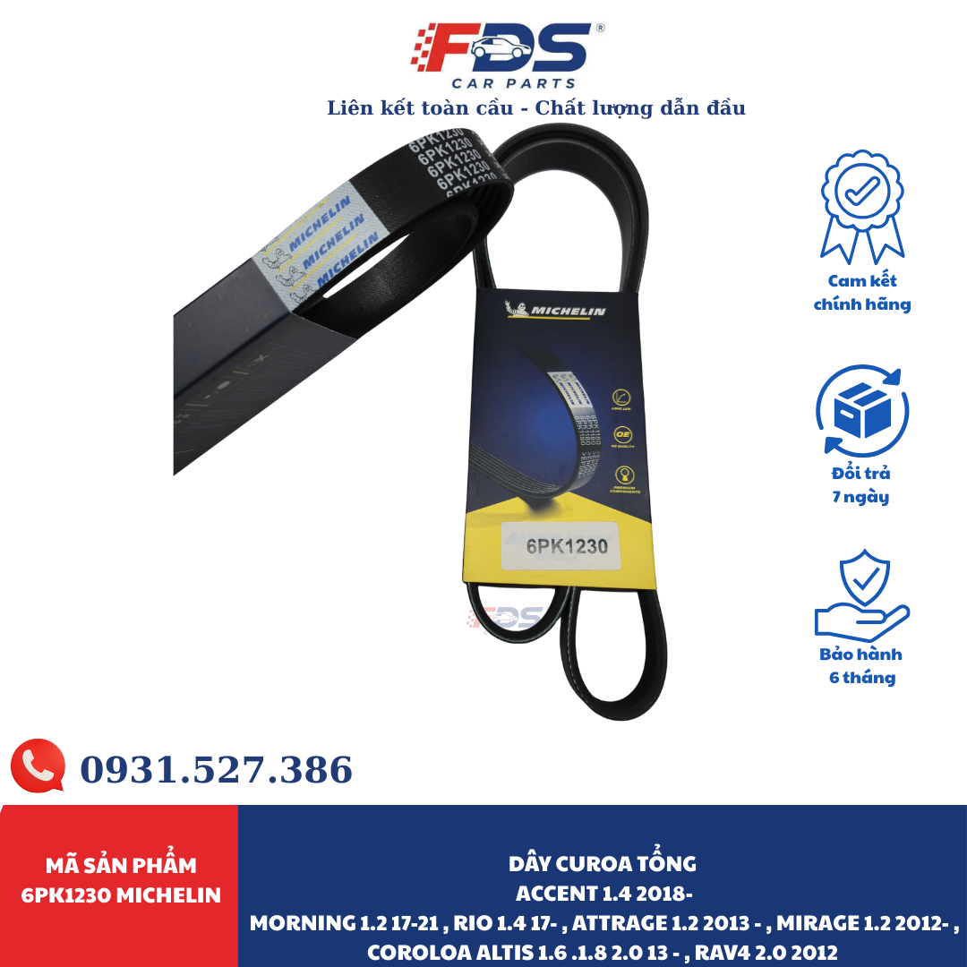 DÂY CUROA TỔNG HYUNDAI / KIA / MITSUBISHI / TOYOTA | MICHELIN 6PK1230