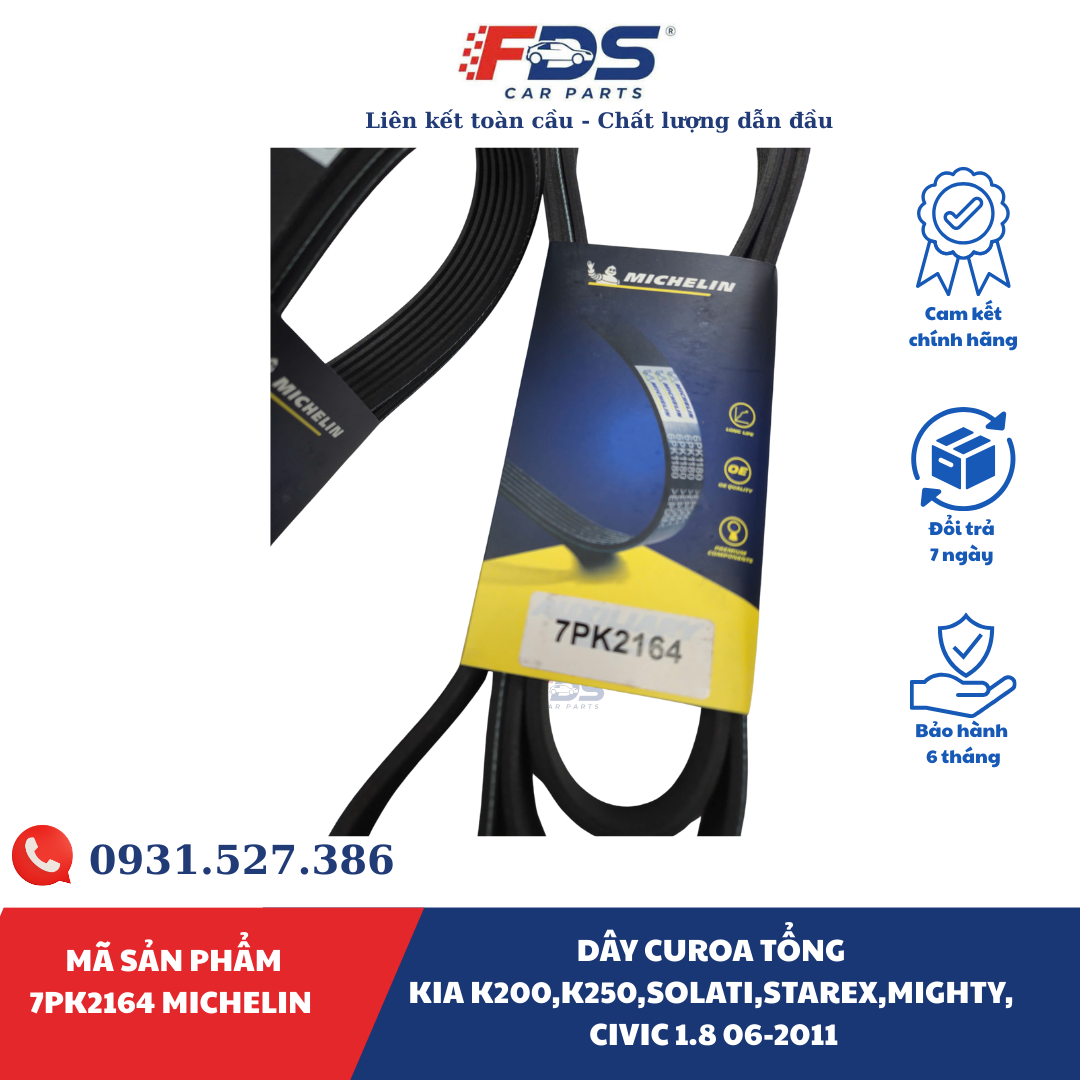 DÂY CUROA TỔNG KIA K200 / K250 – HYUNDAI SOLATI / STAREX / MIGHTY – HONDA CIVIC 1.8 | MICHELIN 7PK2164