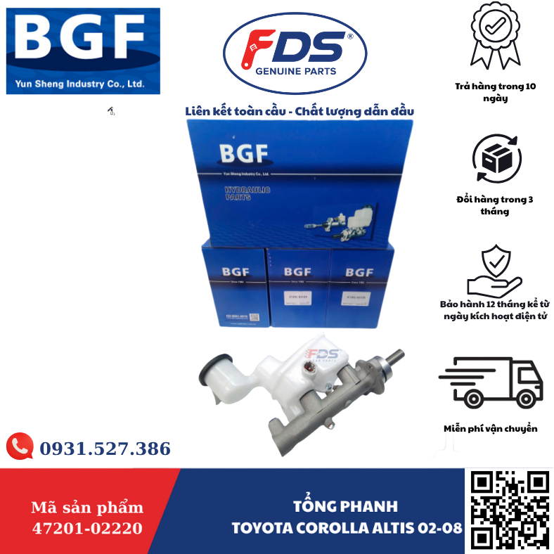 Tổng phanh BGF mã 47201-02220 là lựa chọn thay thế hoàn hảo cho Altis đời 02–08, đảm bảo hiệu quả phanh ổn định, an toàn và bền bỉ – với mức giá hợp lý.